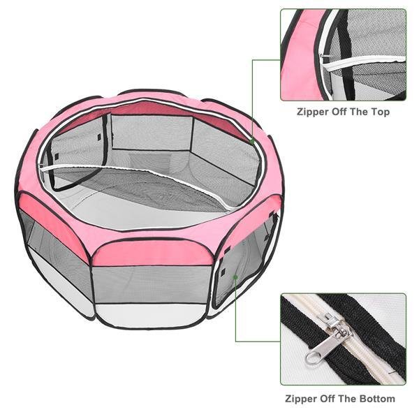 Keep your pet safe and protected in this 45" Portable Foldable 600D Oxford Cloth & Mesh Pet Playpen Fence with Eight Panels whether it is at home or travels with you! It features eight panels to create a safe place that is large enough for your beloved pet to play around. Mesh insert on each panel allows for ultimate ventilation. A sturdy frame with zipper door provides easy step-through access as well as a durable frame to keep your pet away from unwanted animals outside. What's more, this pet playpen is easy to install and can be easily folded into a compact size for ease of storage and transport.