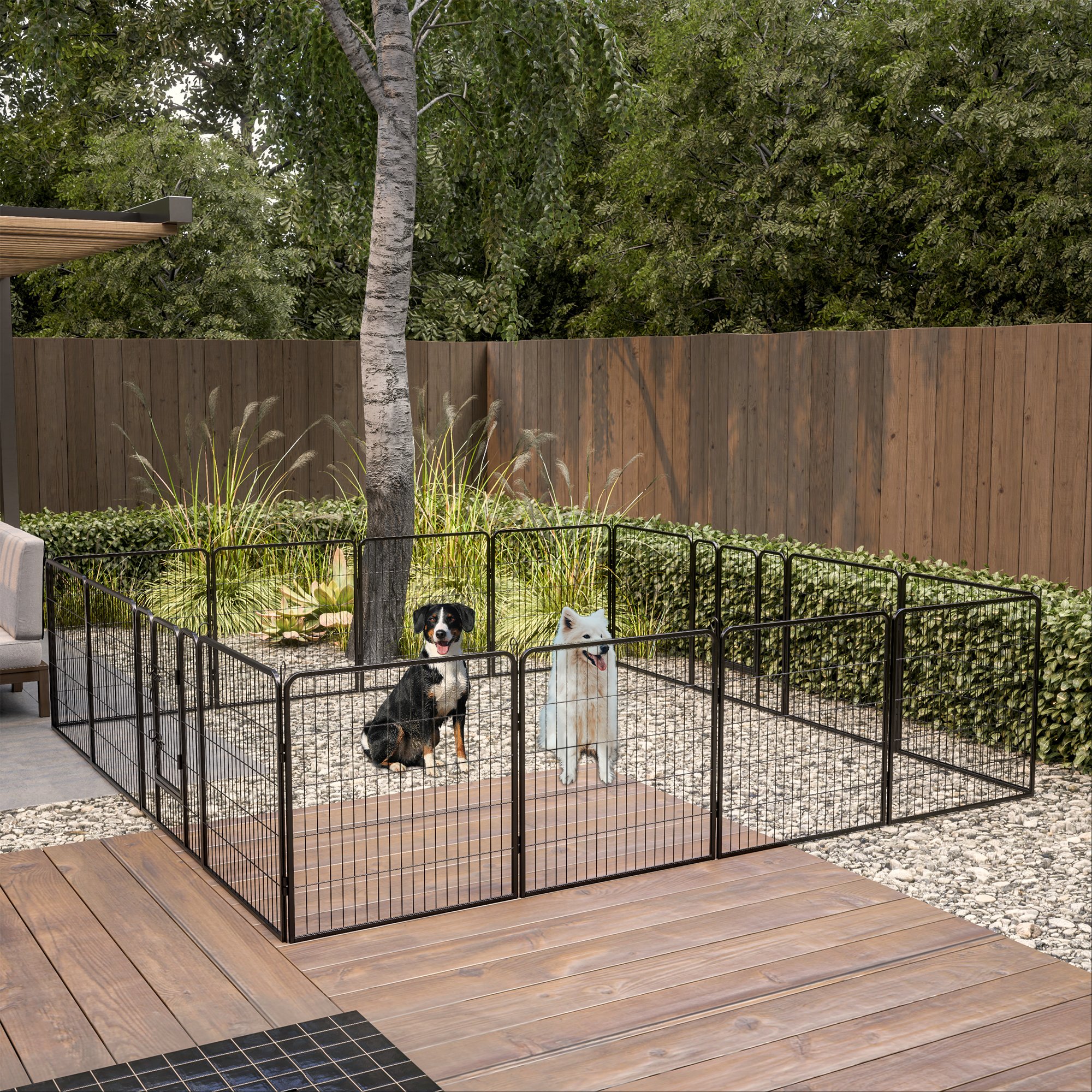 Safe & Secure: Designed with round edges and smooth steel wires, dog run playpen perfectly protect your pets from hurting; The upgraded flat rods can be easily inserted into the ground for greater stability and rigidity.