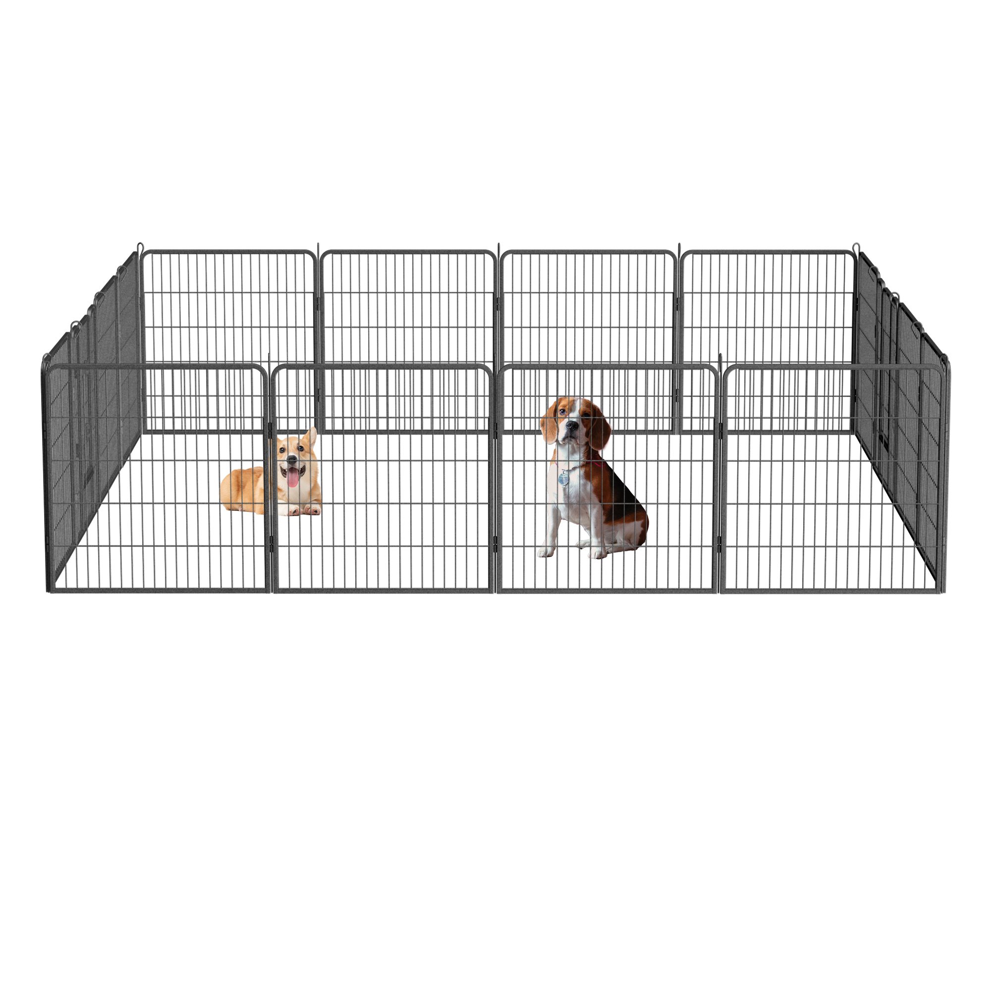 Upgraded Size for Large/Medium/Small Dogs:Each panel of this pet pen is 32"H x 32" W . It's taller 32" height makes it an excellent exercise area for small,medium and large animals including dogs,rabbits, ducks, turtles,guinea pigs,etc.