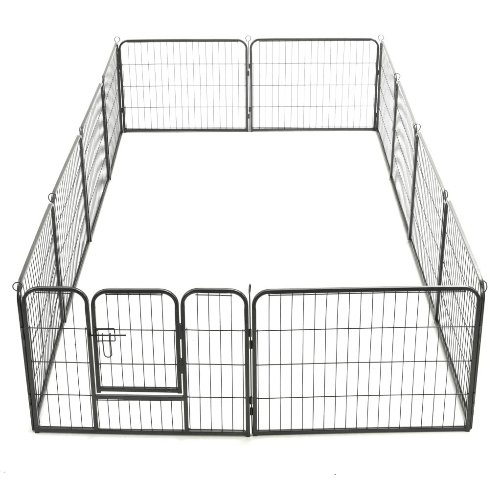 Dog Playpen 12 Panels Steel 31.5"x23.6" Black