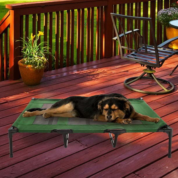 RAISED DOG BED - The elevated dog bed offers ventilation through its large mesh panel and body temperature regulation for your pet, as it keeps them off hot pavement, the ground, and cold floors.