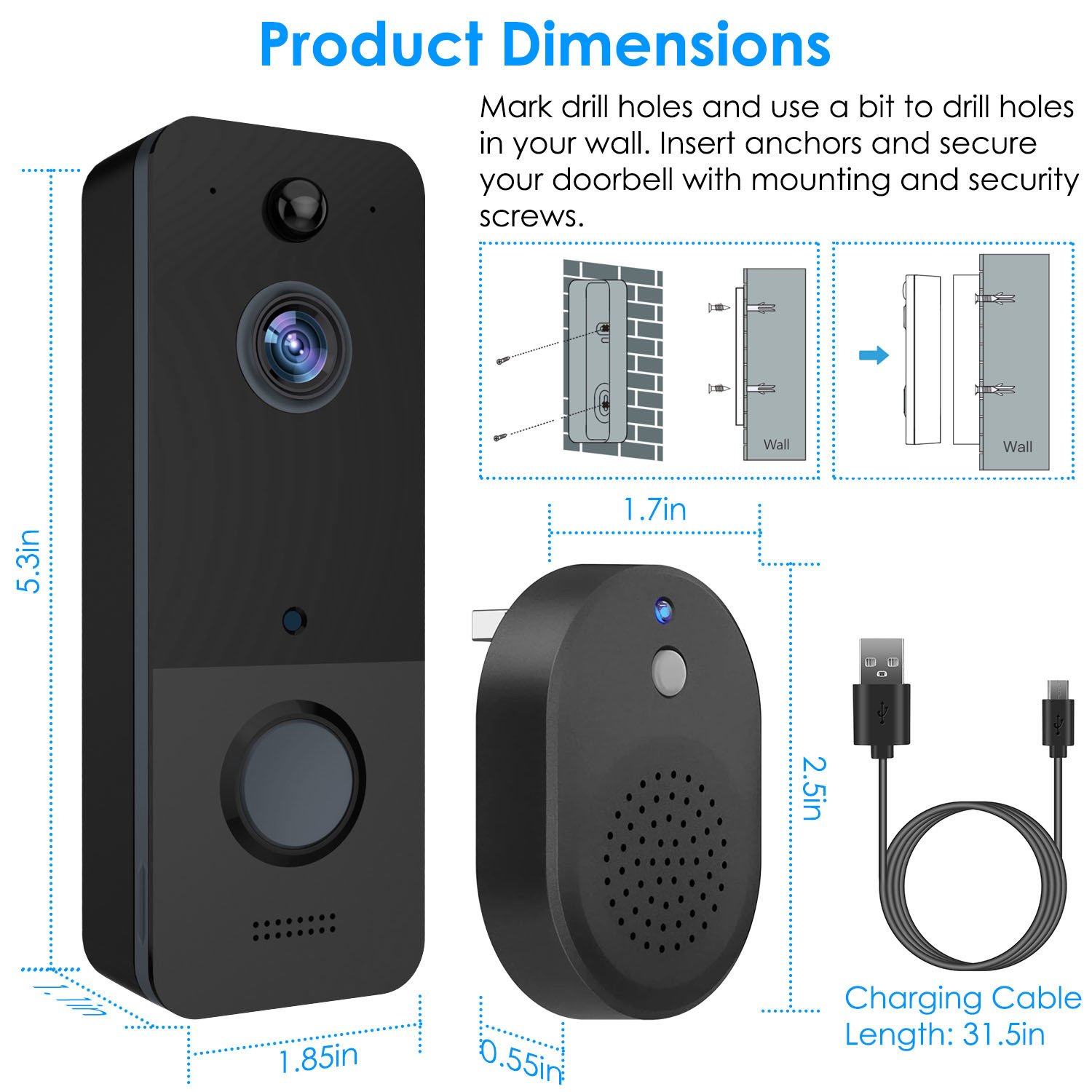 Home > Wireless Smart WiFi Video Doorbell Security Phone Door Ring Intercom Camera Two Way Audio Night Vision 720P Motion Detection Battery Operated