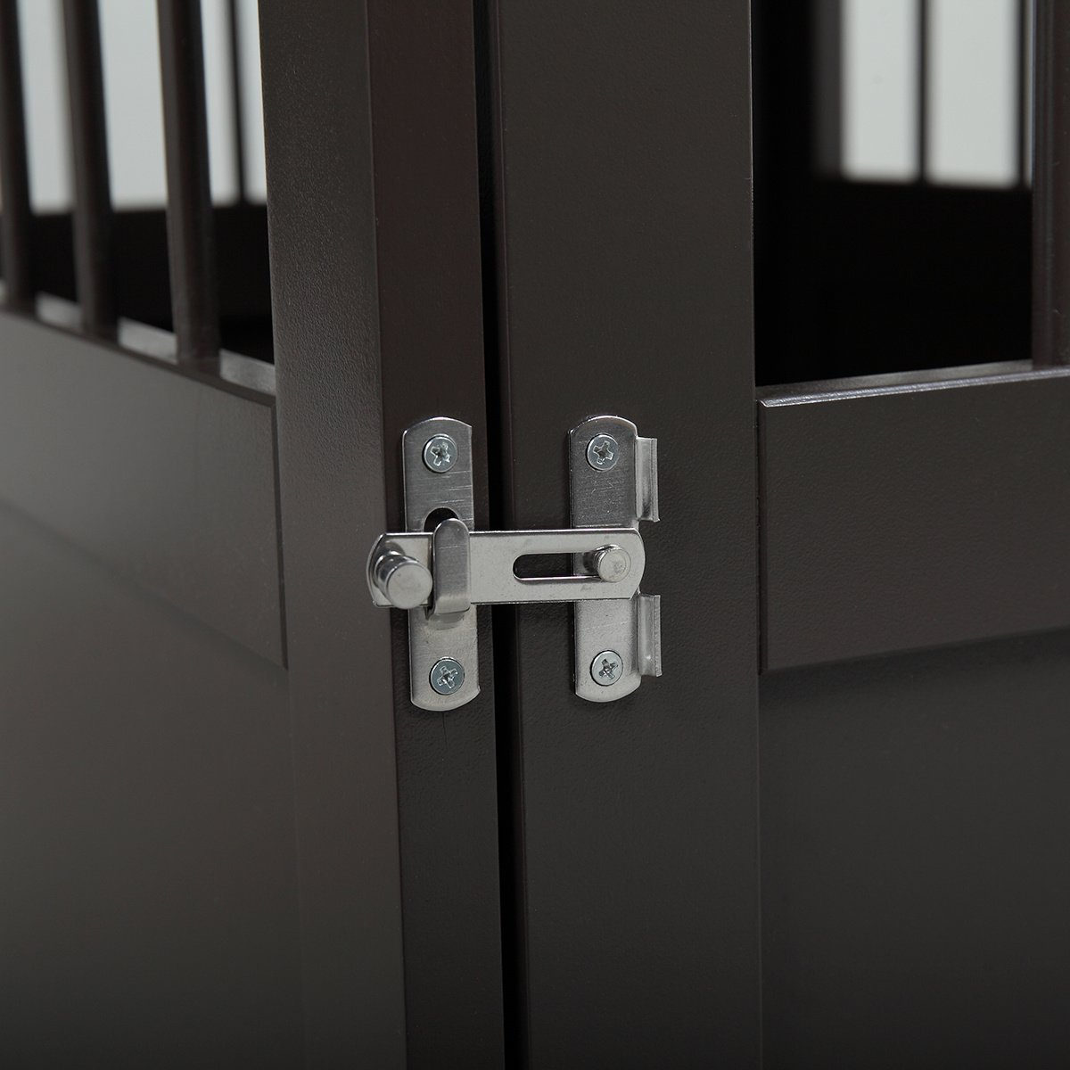[Sturdy Construction]: Crafted from pet-friendly MDF (P2) with a waterproof brown lacquer finish, this dog kennel with an easy-to-clean surface is durable and supports up to 33 lbs.
